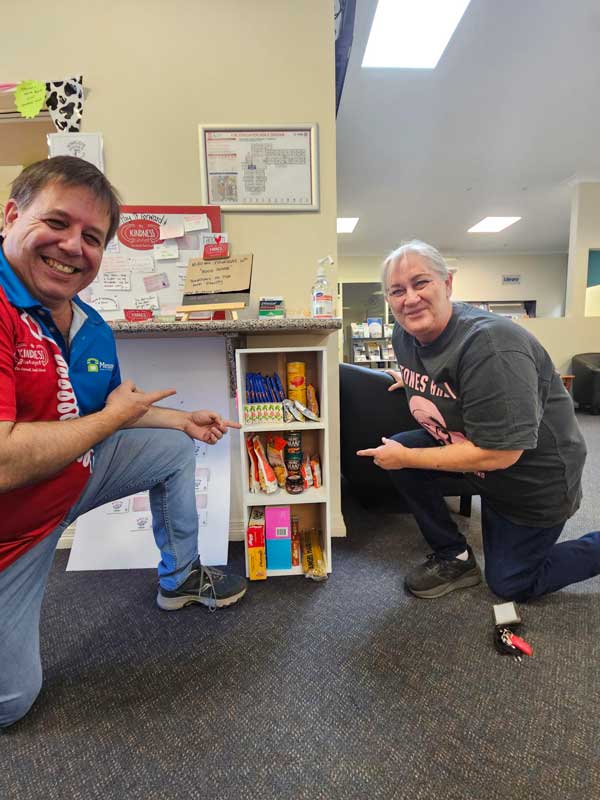 We kicked off the morning with some charades to warm us up and get us laughing, then Steve gave a very enthusiastic 3D Printer demo and talk, we created Pocket Hugs to give away, and we (not me!) won Lucky Door Prizes donated by Nicki from our Kind Café Missy Moos Coffee and a very generous 3x $50 vouchers donated by our sponsor Donna Glass from Helen Munro Property.